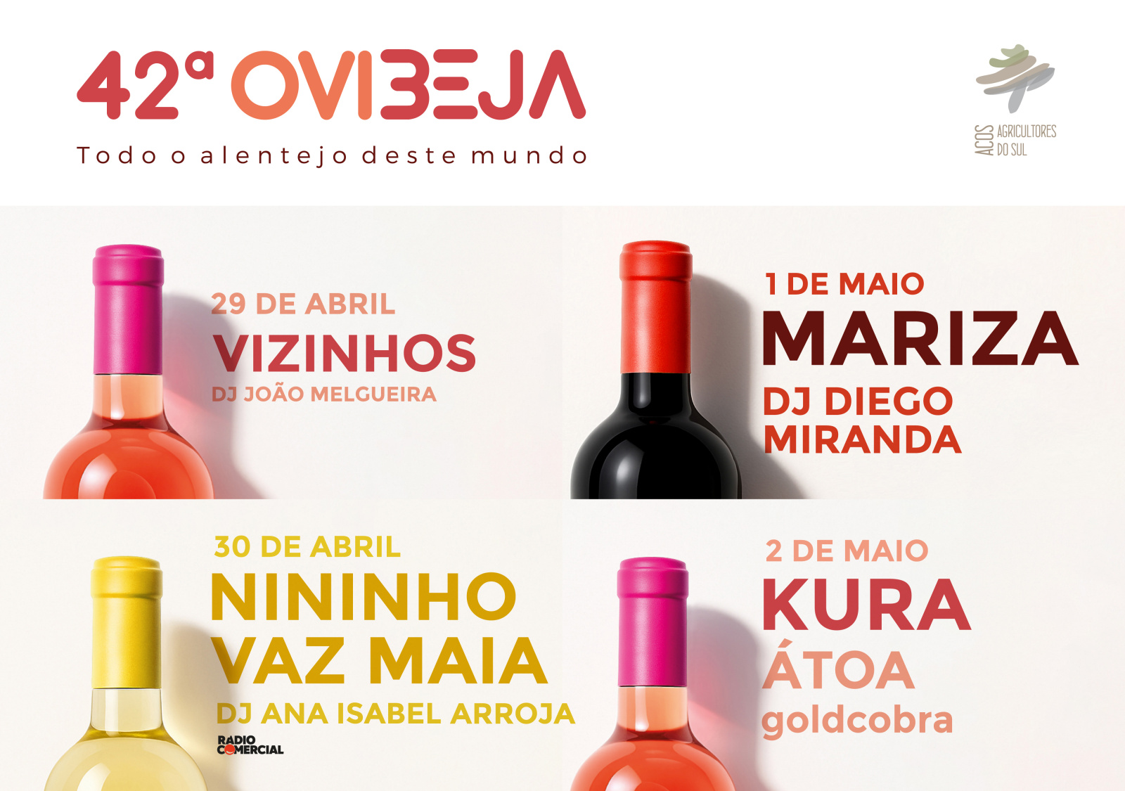 A 42ª Ovibeja, que se realiza de 29 de abril a 3 de maio, concebeu um cartaz de concertos ao encontro de todos os públicos-alvo.